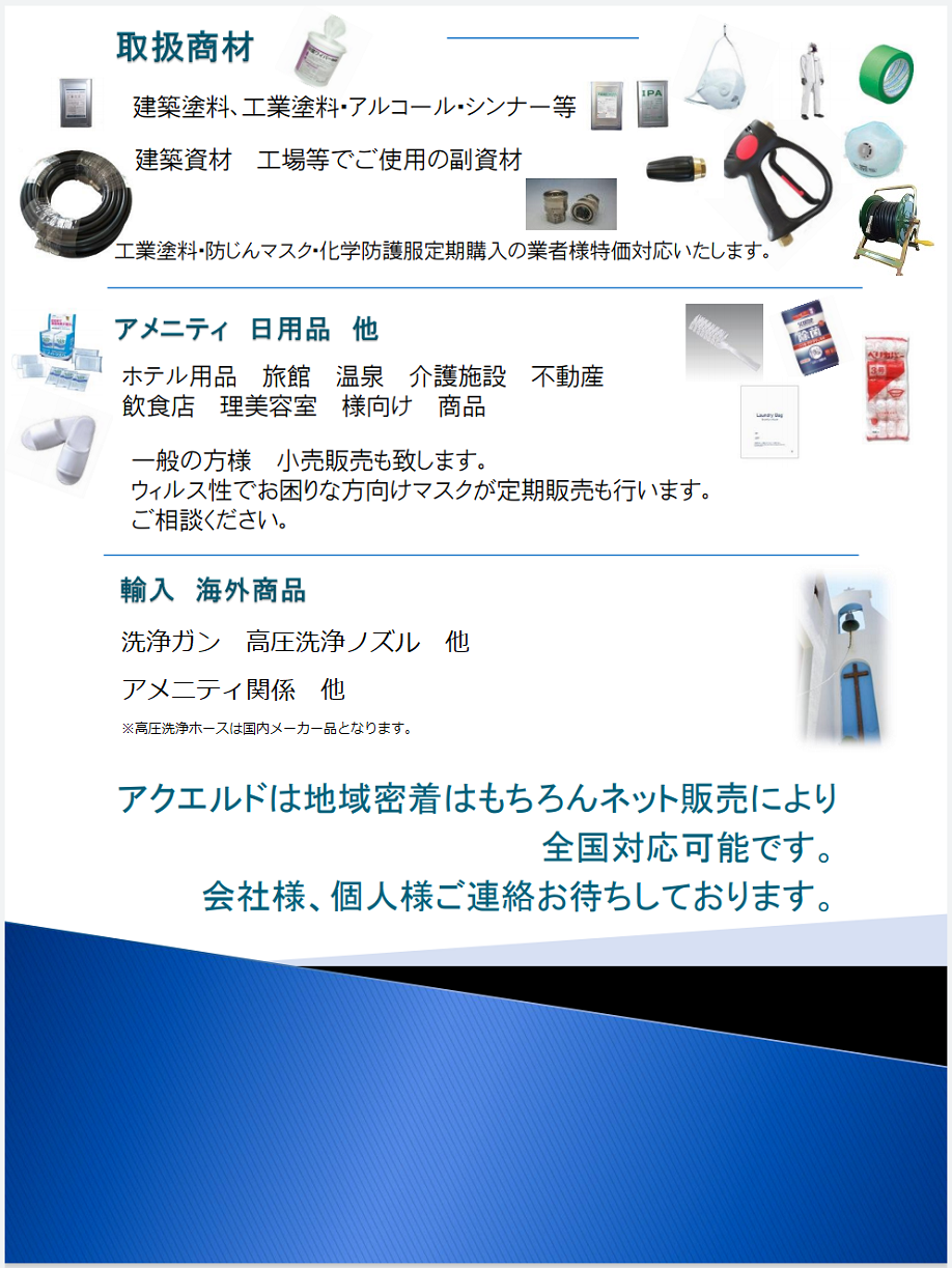 株式会社アクエルド 茨城県結城市 総合商社 ホテル用品から工場、建築資材幅広く販売します